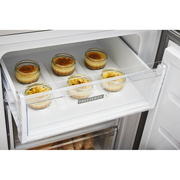 Cechy wolnostojącej lodówko-zamrażarki Whirlpool: kolor inox. Wykonana ze stali kwasoodpornej Optic Inox odpornej na ślady palców. Szklane półki zapewniają wytrzymałość i elegancję. Czujniki 6-ty Zmysł automatycznie obniżają temperaturę w lodówce po włożeniu nowych produktów, zmniejszając zużycie energii. Praktyczna półka do bezpiecznego przechowywania butelek.
